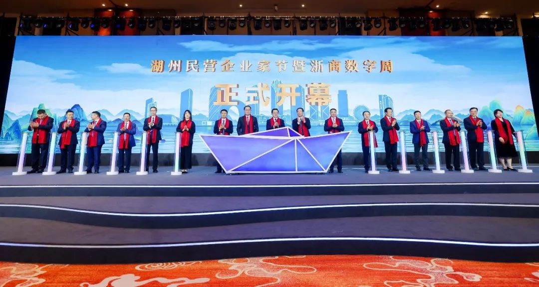 省、市有关向导和张天任董事长,,,,,,,以及相关企业家启动2023湖州民营企业家节暨浙商数字周开幕仪式。。。。。。。